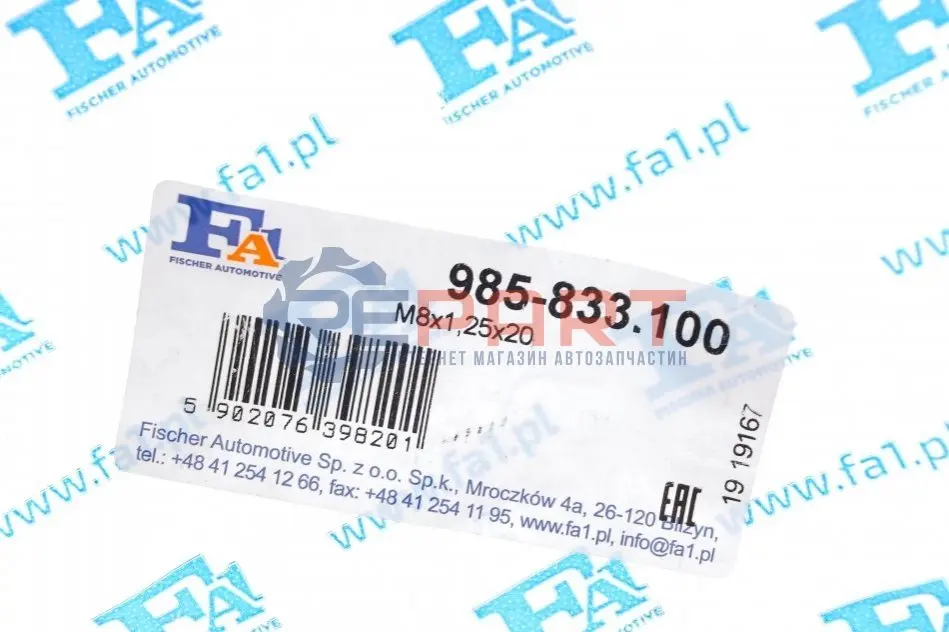 FA1 є торгівельною маркою компанії Fischer Automotive. Цей бренд, що у першу чергу відомий своїм асортиментом монтажних компонентів вихлопних систем (гофри, затискачі, гумові деталі, прокладки, кільця, пружинки а також їх комплекти), включає також пробки (болти) зливу оливи, прокладки двигуна, прокладки та елементи кріплення турбонагнітачів, випускні колектори, продукцію стандартів DIN та налічує понад 10 000 позицій.