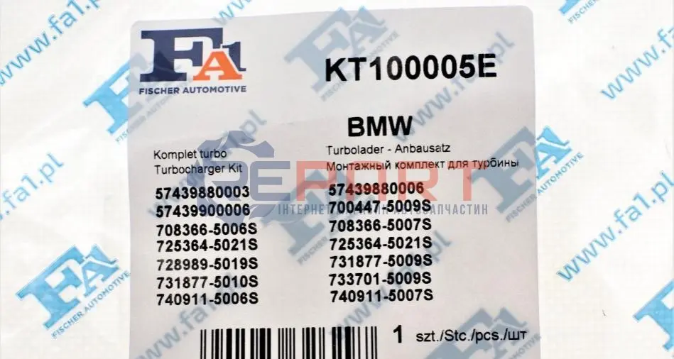 Fischer Automotive One (FA1) KT100005E комплект прокладок турбіни BMW 3 (E46/E90)/5 (E39/E60)/7 (E65/E66/E67) 00-10