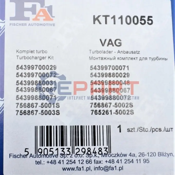Fischer Automotive One (FA1) KT110055 комплект прокладок турбіни VW Caddy III 2.0 TDI 07-10