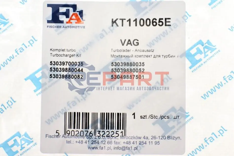 Fischer Automotive One (FA1) KT110065E комплект прокладок турбіни Skoda Octavia 1.8 T 98-06