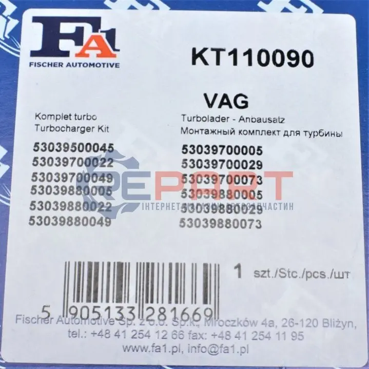 Fischer Automotive One (FA1) KT110090 комплект прокладок турбіни VW Passat 1.8T 96-05