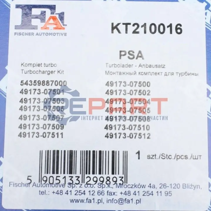 Fischer Automotive One (FA1) KT210016 комплект прокладок турбіни Citroen Berlingo/Peugeot Partner 1.6HDI 08-