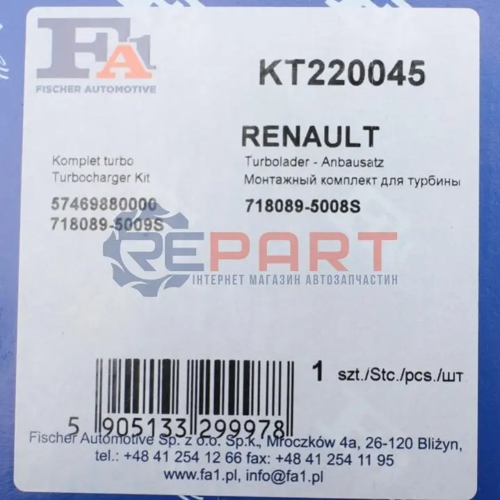 Fischer Automotive One (FA1) KT220045 комплект прокладок турбіни Renault Laguna 2.2 dCi 01-07