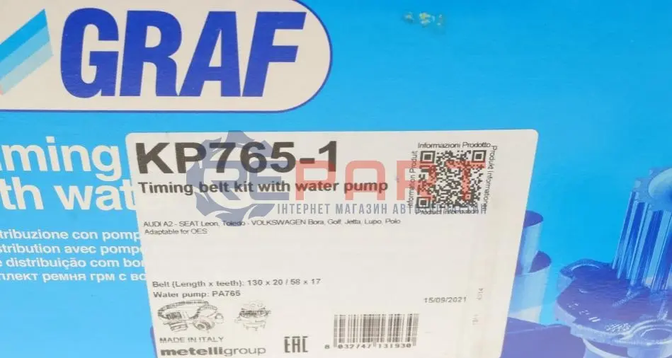 GRAF KP7651 комплект ГРМ + помпа VW Golf/Jetta/Polo/Seat Toledo/Leon 1.6 16V/FSI 00-05 (130x20 / 58x17) (PA765)