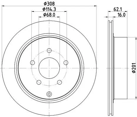 HELLA 8DD355118811 диск гальмівний (задній) Infiniti EX/FX/G/M/Q50/Q70 03- (308x16) (з покриттям)