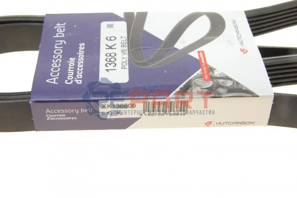 HUTCHINSON 1368K6 ремінь генератора Fiat Doblo 1.6D Multijet/Opel Combo 1.6/2.0CDTI 12- (6PK1368)