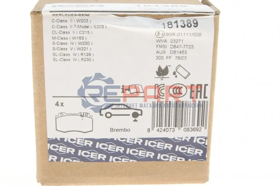 ICER 181389 колодки гальмівні (передні) MB C-class (W203) 02-08/M-class (W163) 98-05/S-class (W220/W221) 98-13