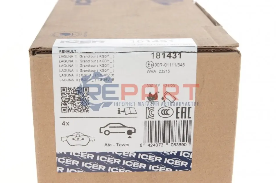 ICER 181431 колодки гальмівні (передні) Renault Laguna II/III 01-15/Megane II 03-/Wind 10-