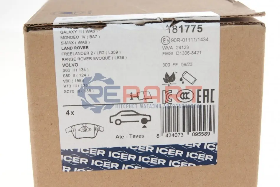 ICER 181775 колодки гальмівні (передні) Ford Mondeo/Galaxy/S-Max/Volvo XC70/V70/S80 07-16/V60/S60/Land Rover 11