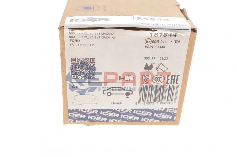 ICER 181844 колодки гальмівні (передні) Fiat 500 07-/Ford Ka 08-16 (+датчики)