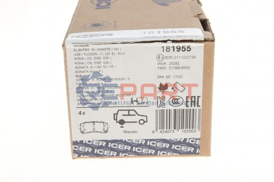 Всі гальмівні колодки Icer виготовляються у відповідності до європейських стандартів та норм, а також комплектуються необхідними аксесуарами і антискрипними пластинами та накладками, залежно від типів гальмівних систем і моделей автомобілів.