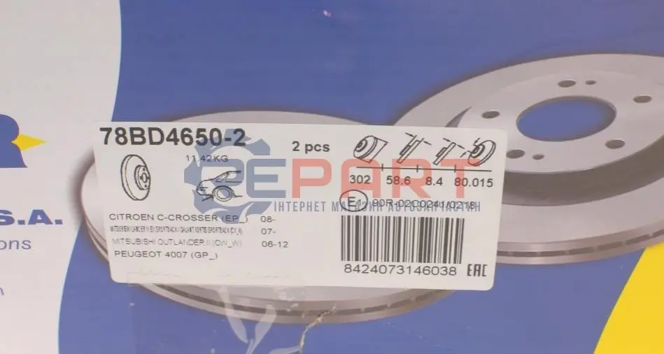 ICER 78BD46502 диск гальмівний (задній) Mitsubishi Outlander/Lancer/Peugeot 4007 06- (302x10)(з покр.)(повний)