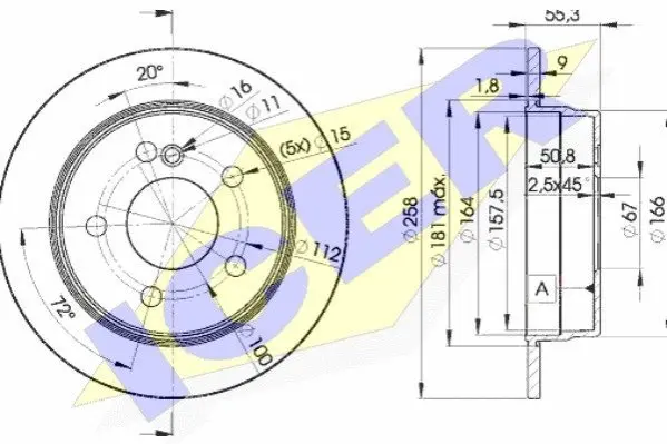 ICER 78BD64702 диск гальмівний (задній) MB 190 (W201/W124) 82-97 (258x9) (з покриттям) (повний)