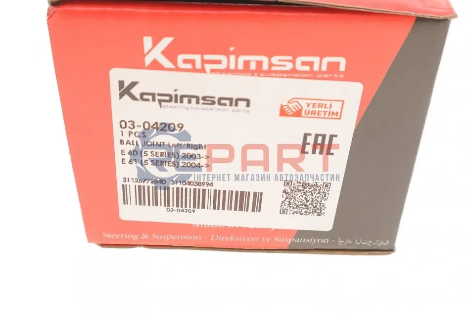 KAPIMSAN – турецька компанія, яка виробляє запчастини для легкових автомобілів, бусів та мінівенів. KAPIMSAN виробляє такі запчастини як накінечники кермової тяги, кульові опори, подушки двигуна та амортизатора, важелі підвіски, сайлентблоки, кермові тяги і тяги стабілізатора.