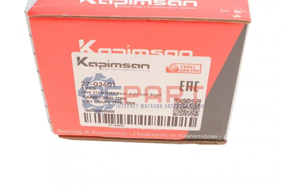 KAPIMSAN – турецька компанія, яка виробляє запчастини для легкових автомобілів, бусів та мінівенів. KAPIMSAN виробляє такі запчастини як накінечники кермової тяги, кульові опори, подушки двигуна та амортизатора, важелі підвіски, сайлентблоки, кермові тяги і тяги стабілізатора.
