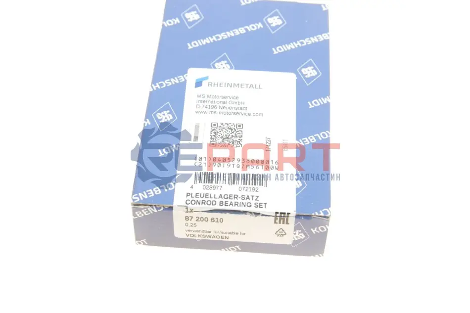 KOLBENSCHMIDT 87200610 вкладиші шатунні VW Golf/Passat/Caddy 1.6i/1.8i/2.0i (+0.25)