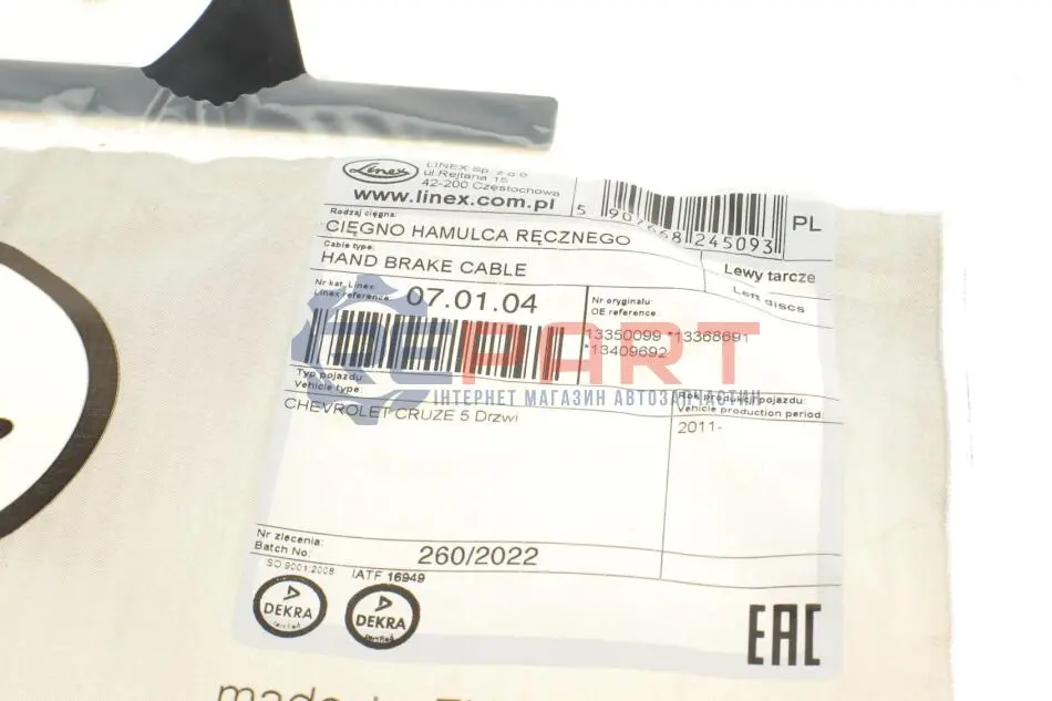 LINEX 07.01.04 трос ручника (L) Chevrolet Cruze 09- (1805/1685 мм)