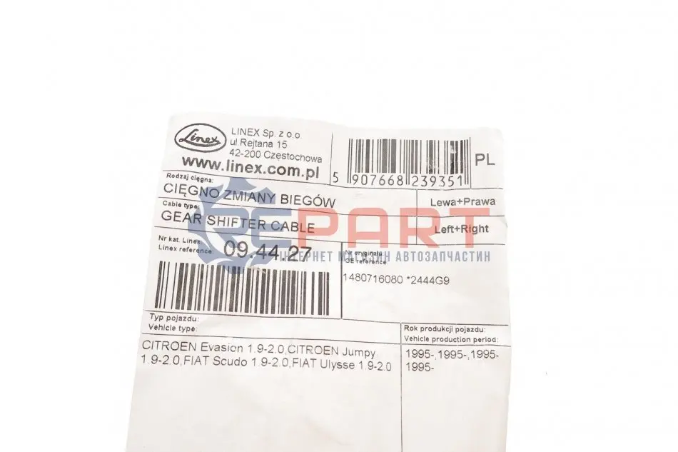 LINEX 09.44.27 трос куліси Fiat Scudo/Citroen Jumpy 1.9TD/2.0JTD (1000+970 мм)