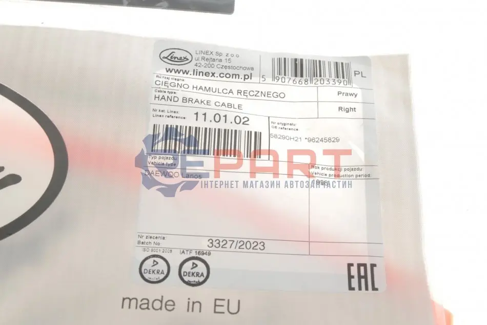 LINEX 110102 трос ручника (R) Daewoo Lanos 1.4/1.5/1.6 16V 97- (2 кріпл.)