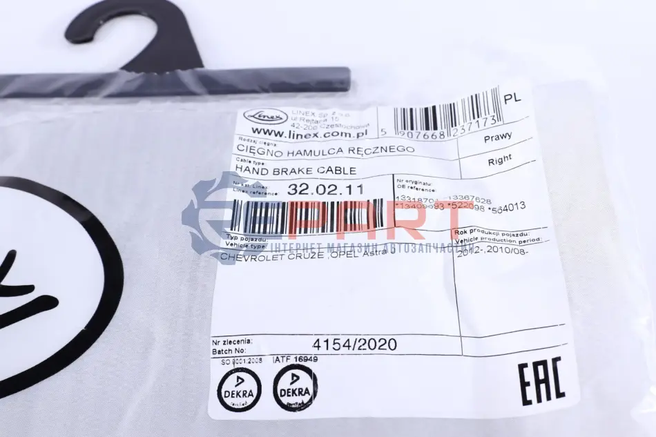 LINEX 320211 трос ручника (R) Opel Astra J/Chevrolet Cruze 09- (1815/1685 мм)