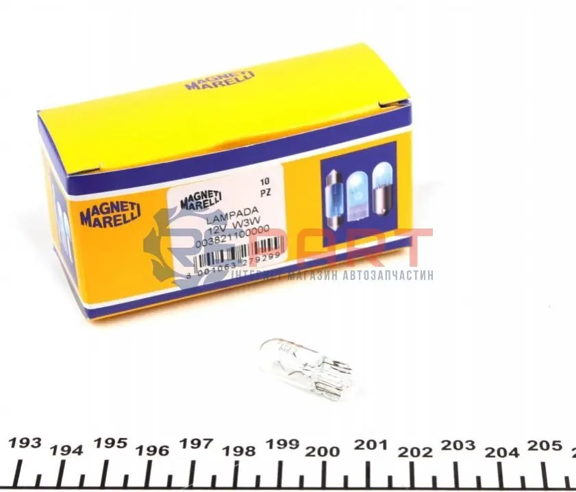 MAGNETI MARELLI 003821100000 автолампа W3W 12V 3W W2.1x9.5d Standard (габарит, щиток приладів) (без цоколя) (W3W 12V)