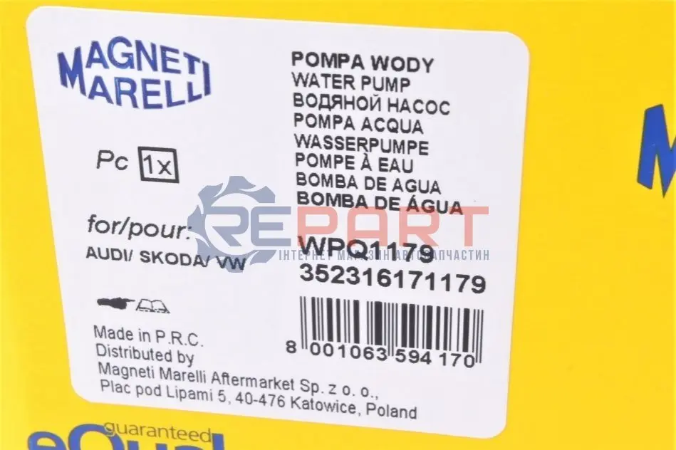 MAGNETI MARELLI 352316171179 помпа води Audi 90/100/200 2.0/2.2/2.2E/2.3/2.3E/quattro 85-91 (WPQ1179)