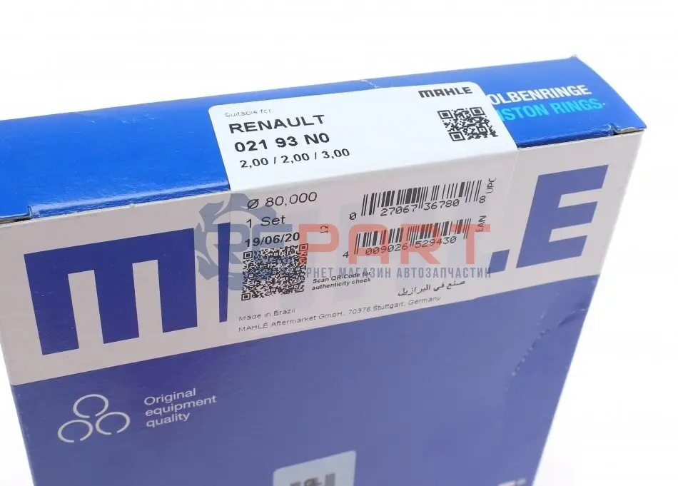 MAHLE 021 93 N0 кільця поршневі Renault Kangoo 1.9D (80.00mm/STD) (2-2-3)