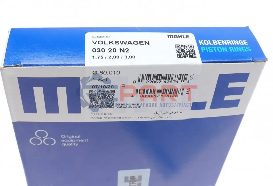 MAHLE 030 20 N2 кільця поршневі VW T4 1.9TD/2.4D 90-03 (80.01mm/+0.5) (1.75-2-3)