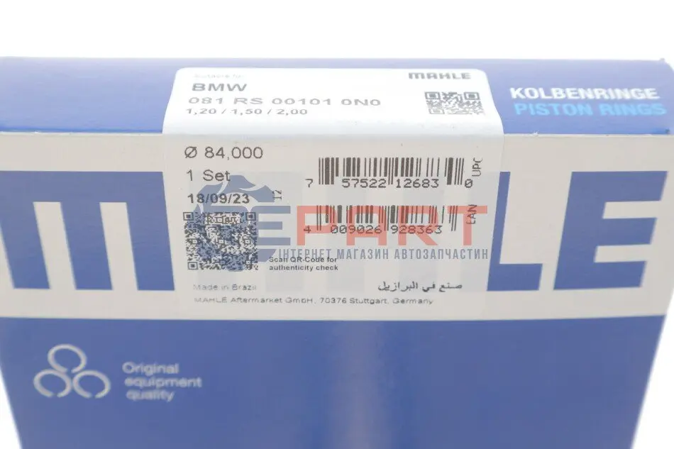 MAHLE 081 RS 00101 0N0 кільця поршневі BMW 1/3/5 N40/42/45/46 1.6-2.0i (84.00mm/STD) (1.2-1.5-2)