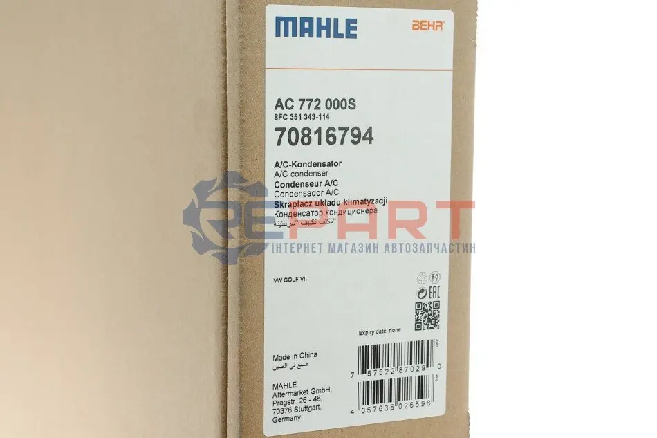 MAHLE AC 772 000S радіатор кондиціонера Audi A3/Q2/Skoda Octavia III/Superb III/VW Golf VII 12-/Passat 14-