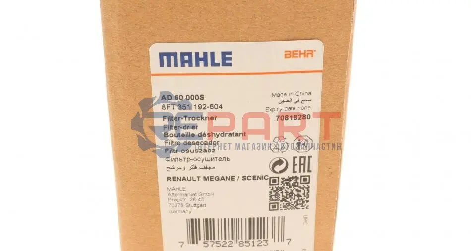 MAHLE AD 60 000S осушувач кондиціонера Renault Master III 2.3dCi 10-/Scenic III 1.2-2.0dCi 09-