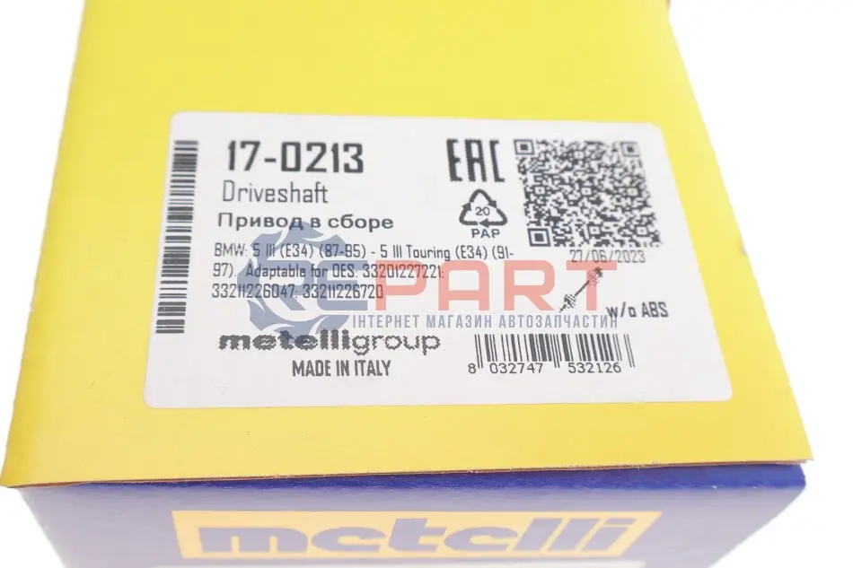 Metelli 17-0213 піввісь (передня) BMW 5 (E34) 88-96 (471mm) (-ABS)
