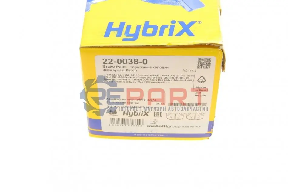 Metelli 22-0038-0 колодки гальмівні (задні) Citroen Saxo/Xsara/Peugeot 105/205/206/306/309 84-