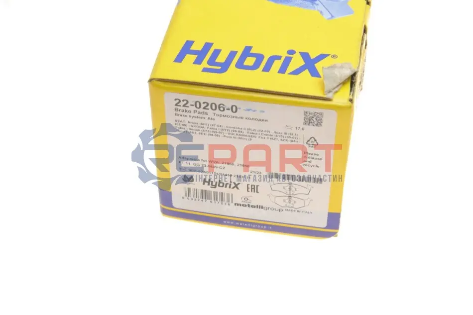 Metelli 2202060 колодки гальмівні (передні) Seat Cordoba/Ibiza 02-09/Skoda Fabia 99-08/VW Polo 94-12/Lupo 98-05/Fox