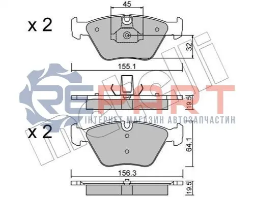 Metelli 2202073 колодки гальмівні (передні) BMW 3 (E46) 99-07/X3 (E83) 03-11/Z4 (E85/E86) 06-08
