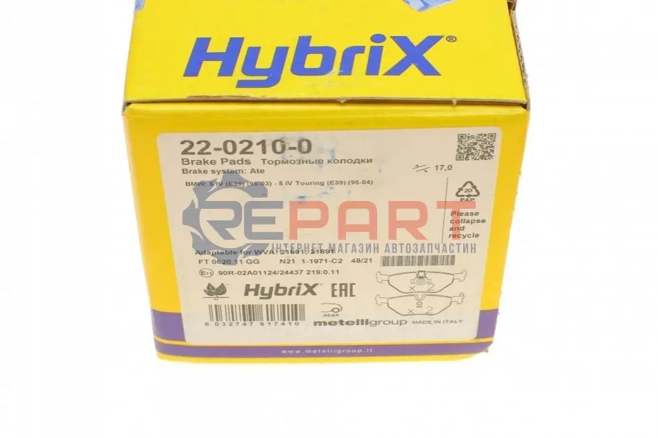 Metelli 2202100 колодки гальмівні (задні) BMW 5 (E39) 95-04
