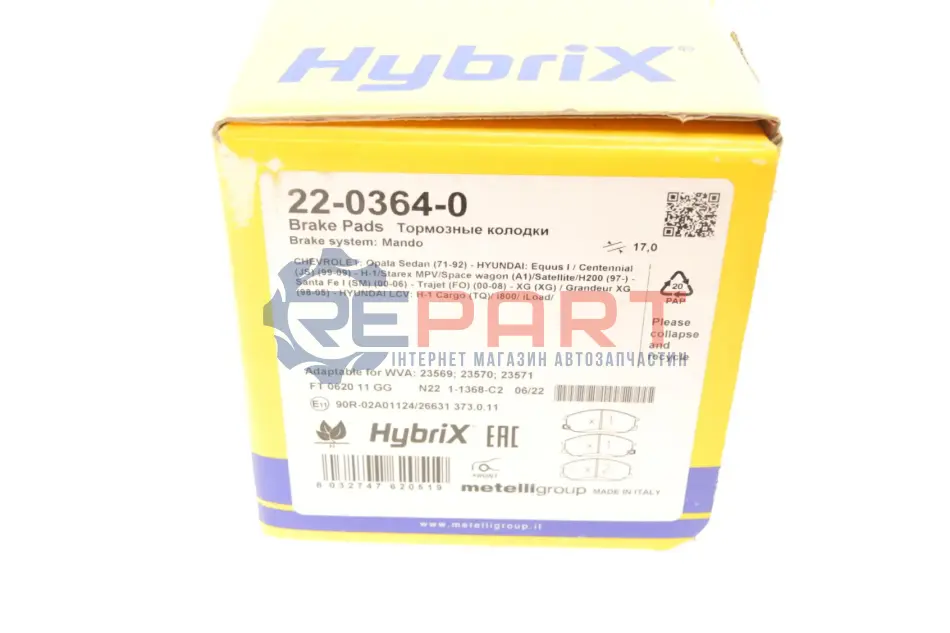 Metelli 2203640 колодки гальмівні (передні) Hyundai Santa Fe/Trajet 00-12/Ssangyong Actyon/Kyron 05-/Rexton 02-
