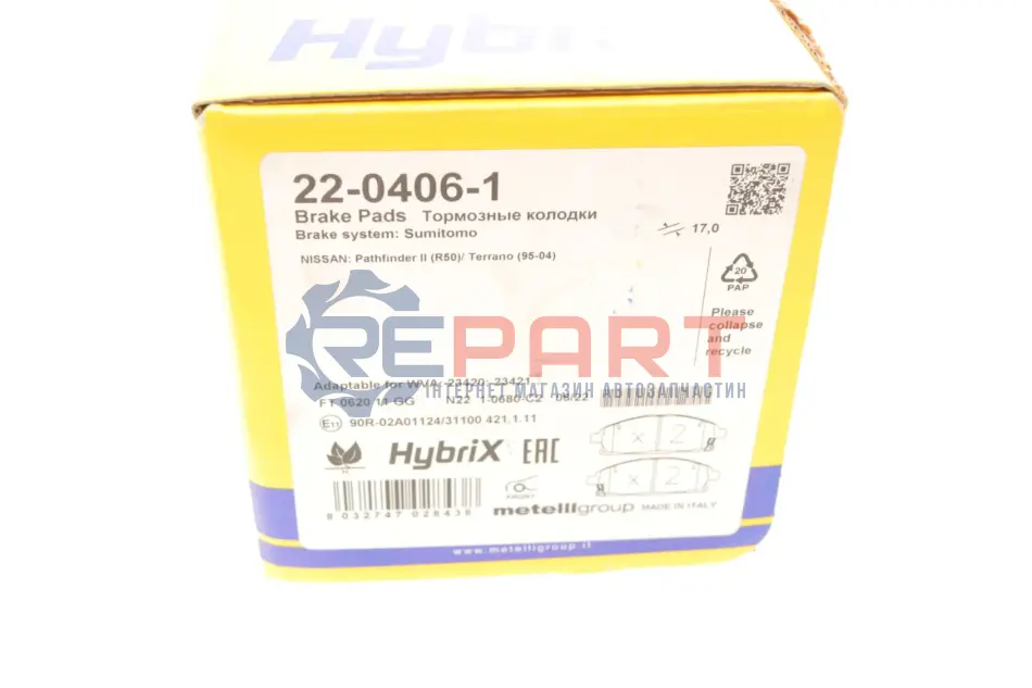Metelli 22-0406-1 колодки гальмівні (передні) Nissan X-Trail 01-13/Pathfinder 97-04 (з аморт. коливання)