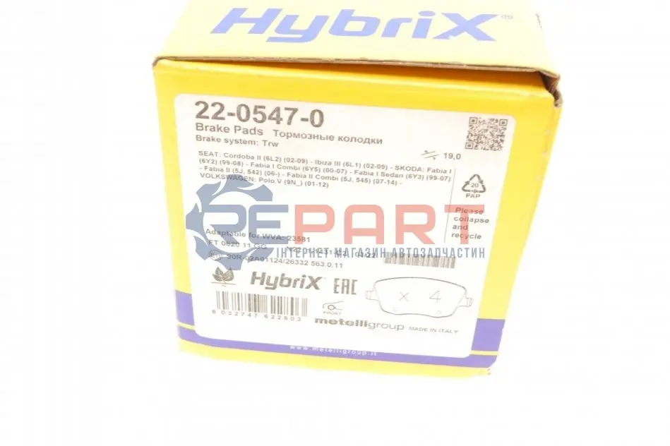 Metelli 2205470 колодки гальмівні (передні) Seat Cordoba/Ibiza IV/VW Polo/Skoda Fabia 99-15/Roomster 06-15
