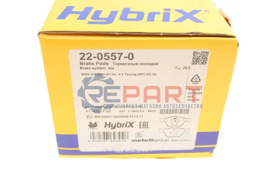 Metelli 2205570 колодки гальмівні (передні) BMW 3 (E90/E91/E92) 07-13/5 (E60/E61) 03-10/X1 (E84) 09-15