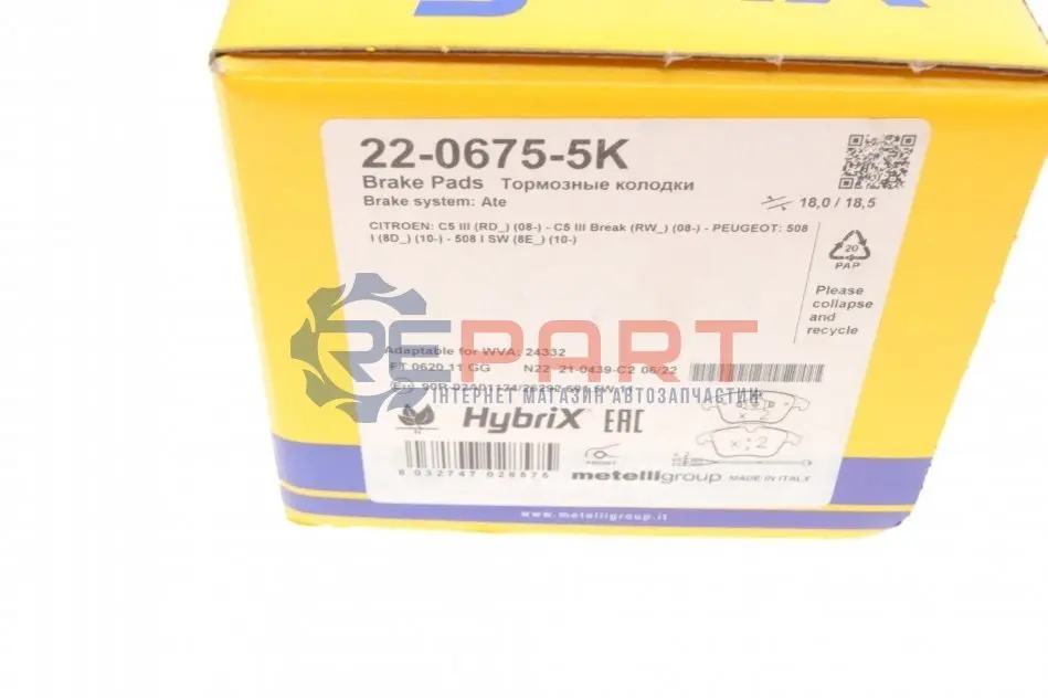 Metelli 2206755K колодки гальмівні (передні) Citroen C5/Peugeot 508 08- (з датчиками)