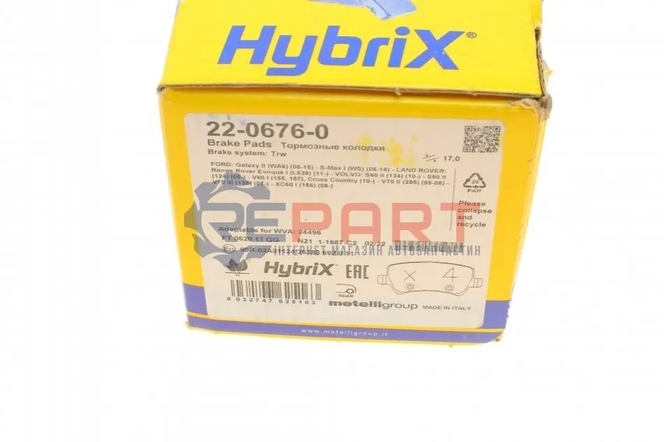 Metelli 2206760 колодки гальмівні (задні) Ford Galaxy/S-Max 06-15/Volvo S60/S80/V60/V70/XC60/XC70 08-/Land Rover 11