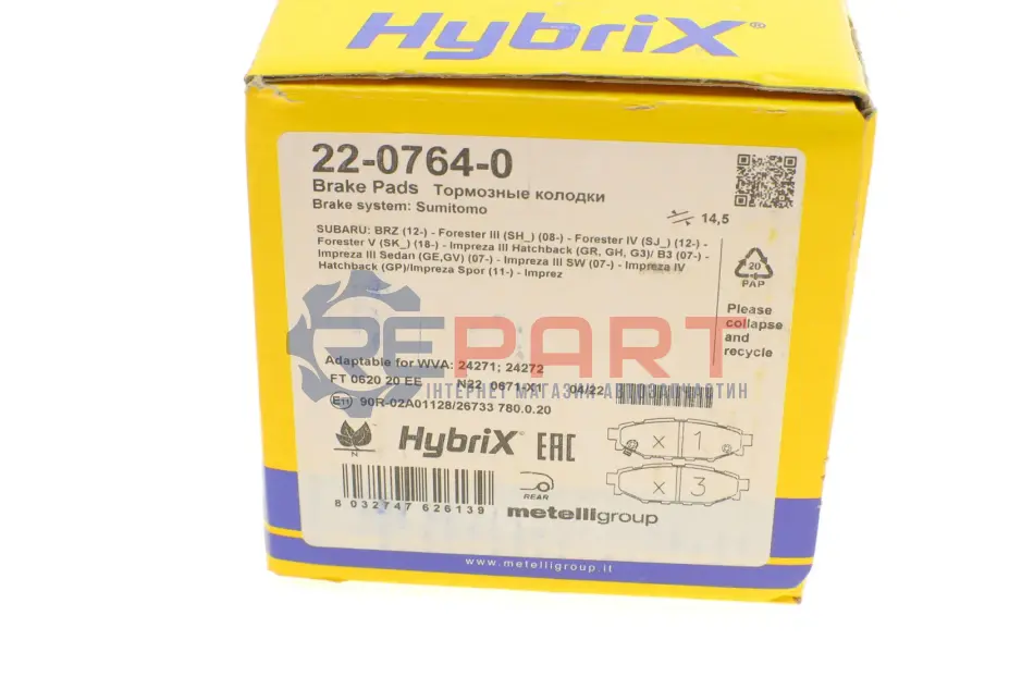 Metelli 2207640 колодки гальмівні (задні) Subaru Forester/Impreza 08-/Legacy 03-14/Outback 03-/Toyota GT 12-