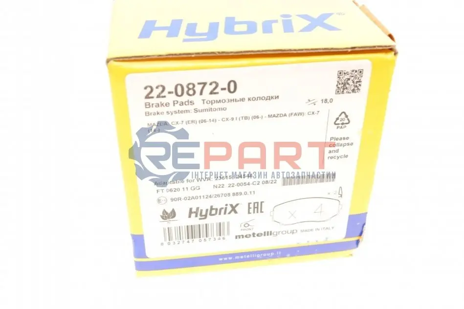 Metelli 2208720 колодки гальмівні (передні) Mazda CX-7/CX-9/Mitsubishi L200/Pajero Sport 06-