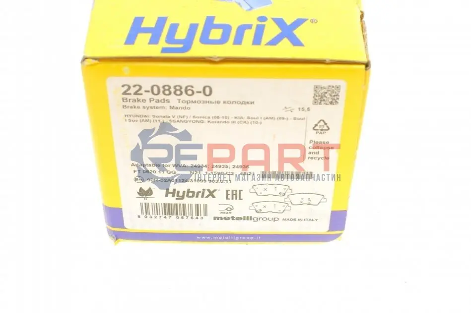 Metelli 2208860 колодки гальмівні (задні) Hyundai Tucson 04-/Elantra/Sonata 05-15/i40/Grandeur/Kia Optima/Soul 10-