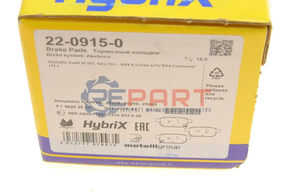 Metelli 2209150 колодки гальмівні (задні) Suzuki Vitara III 15-/SX4 S-cross 13-/Swift IV 10-/Baleno 16-