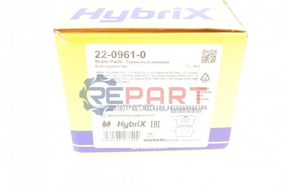 Metelli 2209610 колодки гальмівні (передні) BMW 1 (F20-21)/2 (F22/F87/F45-46)/3 (F30-31/F34/F80)/4 (F32/F36)/X3 11-