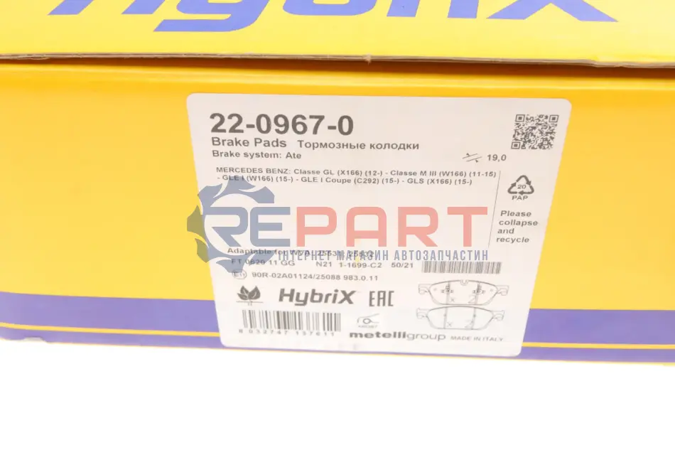 Metelli 2209670 колодки гальмівні (передні) MB M-class/GLE (W166) 11-18/GL-class (X166) 12-19