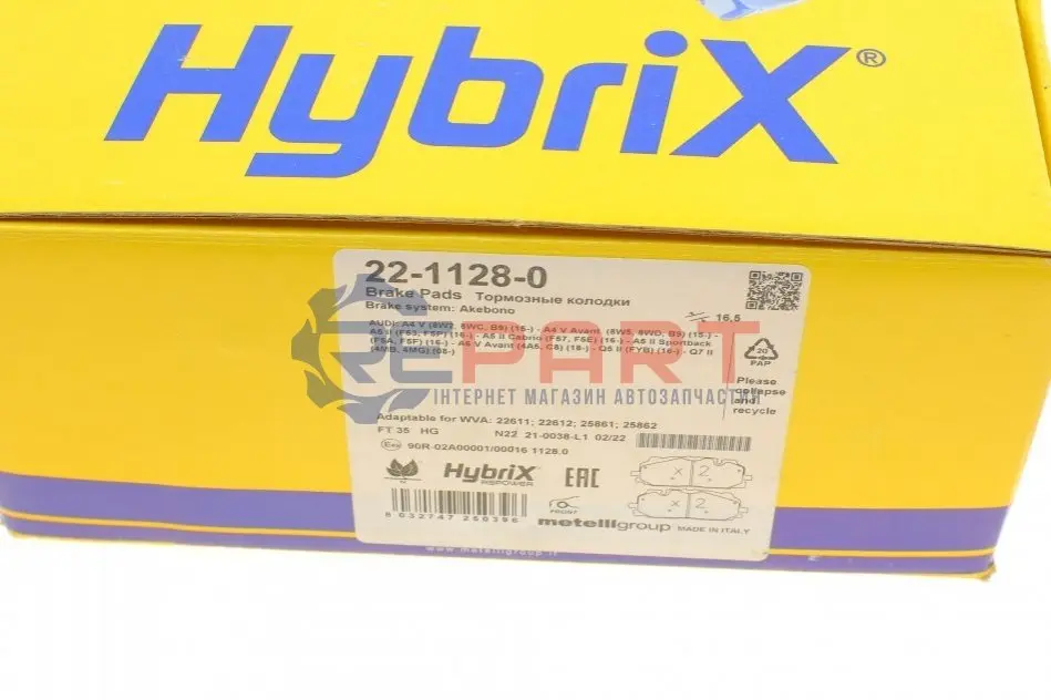 Metelli 2211280 колодки гальмівні (передні) Audi A4/A5/Q5/Q7 15-/ A5 Sportback 07-17/ A6/A7/A8/Q3/Q8/VW Touareg 17-