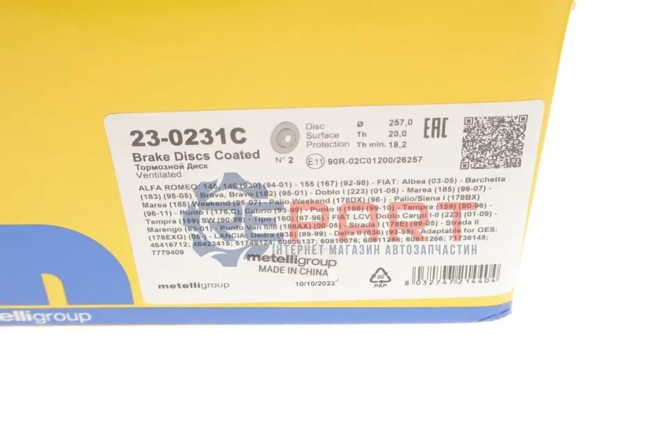 Metelli 23-0231C диск гальмівний (передній) Fiat Doblo 01-05/Punto 93-10/Bravo 96-01 (257x20) (з покриттям) (вент.)